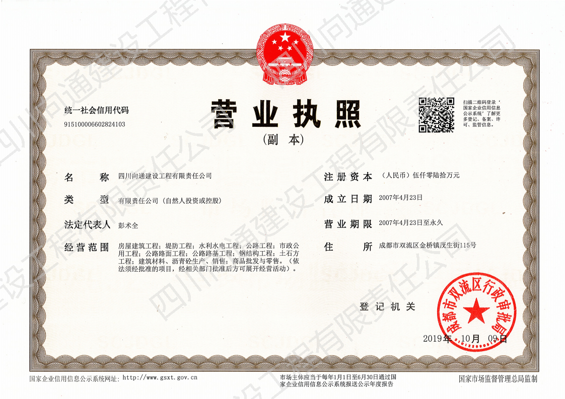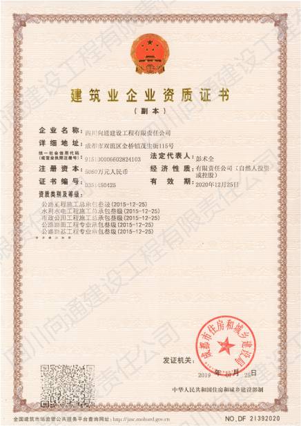 四川向通建設(shè)工程有限責(zé)任公司 四川向通建設(shè)工程有限責(zé)任公司成立于2007年,注冊資本金5060萬元,是一家專業(yè)從事瀝青混合料生產(chǎn)、專業(yè)分包以及市政道路、公路、路基工程專業(yè)施工建設(shè)的企業(yè)。公司注冊地址及生產(chǎn)廠區(qū)位于成都市雙流區(qū)金橋鎮(zhèn)茂生街115號,總占地面積約120畝;辦公地址位于雙流區(qū)海濱城海濱廣場7座11樓。公司生產(chǎn)廠區(qū)(雙流金橋)現(xiàn)有LB-5000型瀝青混合料拌合樓1套,每小時瀝青混合料生產(chǎn)量可達(dá)380噸。此外,根據(jù)項目需要,公司在多地建立4000型拌合站以服務(wù)施工(廣安齊福、達(dá)州、綿陽等),每小時瀝青混合料生產(chǎn)量為320噸。各種國內(nèi)外道路施工機(jī)械:攤鋪機(jī)、壓路機(jī)、銑刨機(jī)、灑布車、封層車、吊車、拖車、等70余臺,可滿足各種道路施工需求。公司近100輛保溫運(yùn)輸車輛均安設(shè)保溫板、加塞保溫棉、覆蓋棉絮和隔熱防水雨篷,有效減少瀝青混合料在運(yùn)輸過程中的溫度流失進(jìn)而保證瀝青路面的施工質(zhì)量。 公司目前擁有眾多優(yōu)秀的技術(shù)人才,成熟的市場渠道,良好的企業(yè)聲譽(yù)。現(xiàn)有各專業(yè)施工人才共計79人;5支專業(yè)的施工班組可根據(jù)現(xiàn)場的具體情況制定實(shí)施性施工方案。今后公司將竭誠為各界客戶提供出色的產(chǎn)品和服務(wù)及具有競爭性的價格和具有創(chuàng)新精神的高效解決方案。 公司曾經(jīng)榮獲:新津鄧雙段被新津縣政府評為“優(yōu)良工程”;雙流宗申大道被雙流縣政府評為“優(yōu)良工程”;成都后花園被成都市政府評為“重合同守信譽(yù)單位”;被三一重工評為“有遠(yuǎn)見單位”。并在2018年1月被中國五冶集團(tuán)評為“優(yōu)秀供方”;同年3月被四川交投評為2017年度“優(yōu)秀合作單位”的榮譽(yù)。榮譽(yù)的背后是我們公司所有員工堅持不懈的努力。 作為現(xiàn)代化的企業(yè),公司將以技術(shù)為切入點(diǎn),以信譽(yù)為支撐點(diǎn),以市場為著眼點(diǎn),促進(jìn)管理創(chuàng)新和技術(shù)創(chuàng)新。因此我公司能在短時間內(nèi)迅速發(fā)展成為一家擁有各類中大型施工機(jī)械設(shè)備的公司。在今后的工作中我們將借用現(xiàn)代電子信息溝通的便利為公司的發(fā)展助力,同時將秉承發(fā)揚(yáng)以往的團(tuán)結(jié)拼搏精神,推動公司成為“快穩(wěn)型”發(fā)展的企業(yè)。 在未來的發(fā)展過程中,四川向通始終秉承“以質(zhì)量求生存,以信譽(yù)求發(fā)展”的企業(yè)管理理念,以“啟后為先創(chuàng)佳績,爭做路建行業(yè)標(biāo)”的企業(yè)宗旨與建設(shè)單位建立合作關(guān)系,創(chuàng)造更加輝煌燦爛的明天! 四 川 向 通 建 設(shè)